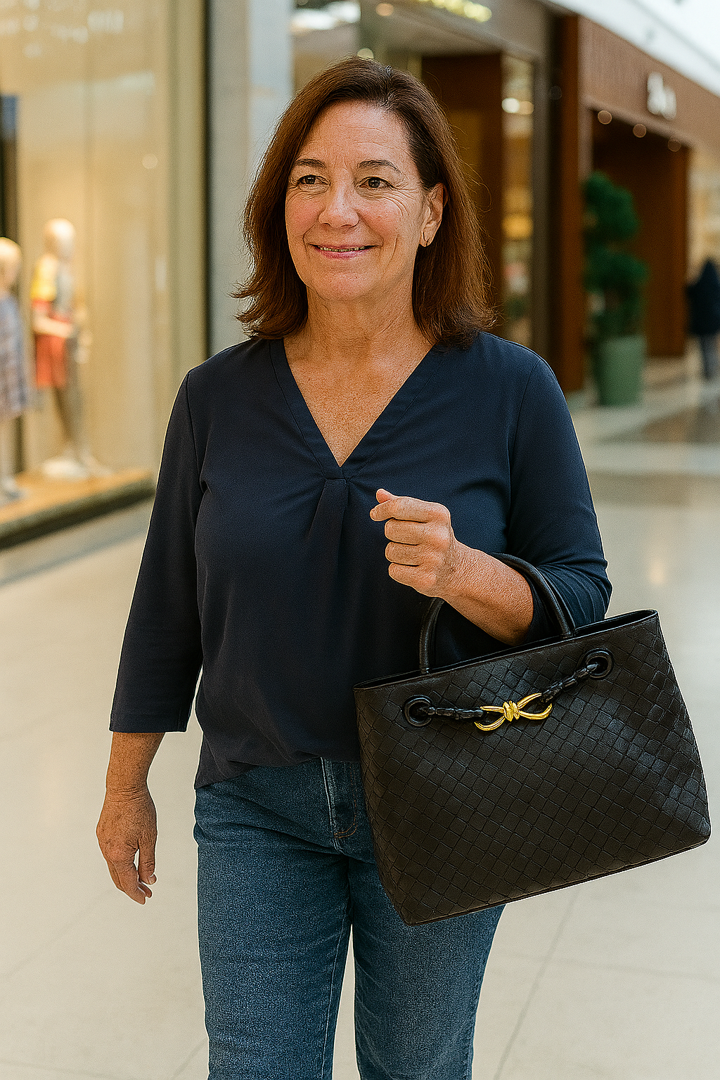 - Braided Handles: Dual top handles with braided detailing for a secure, stylish grip