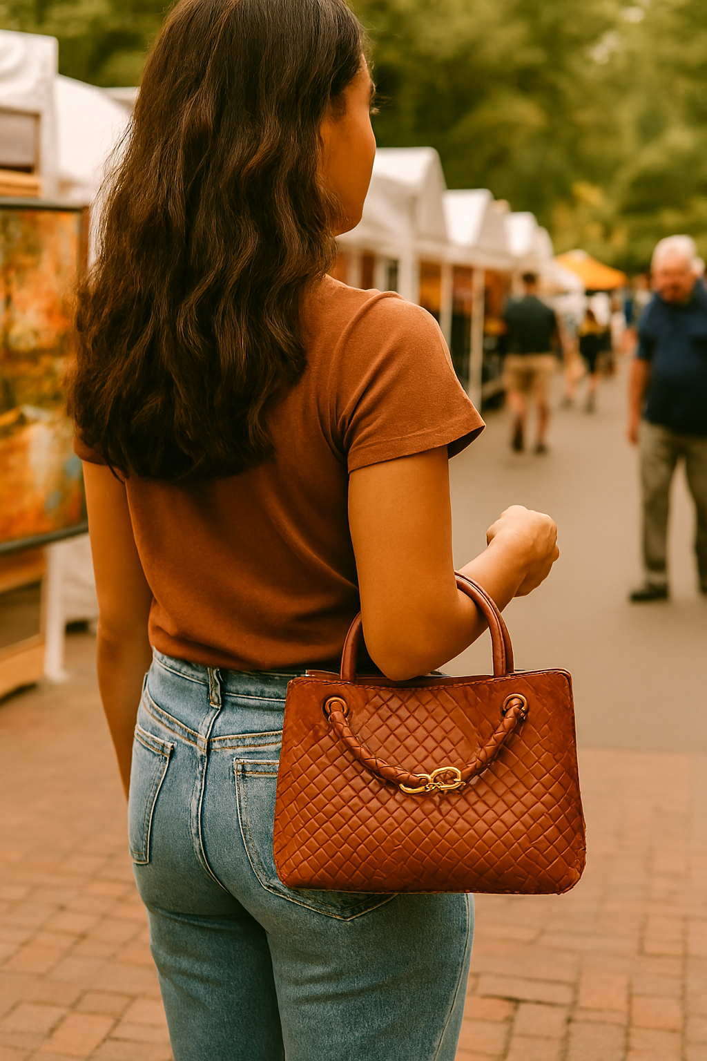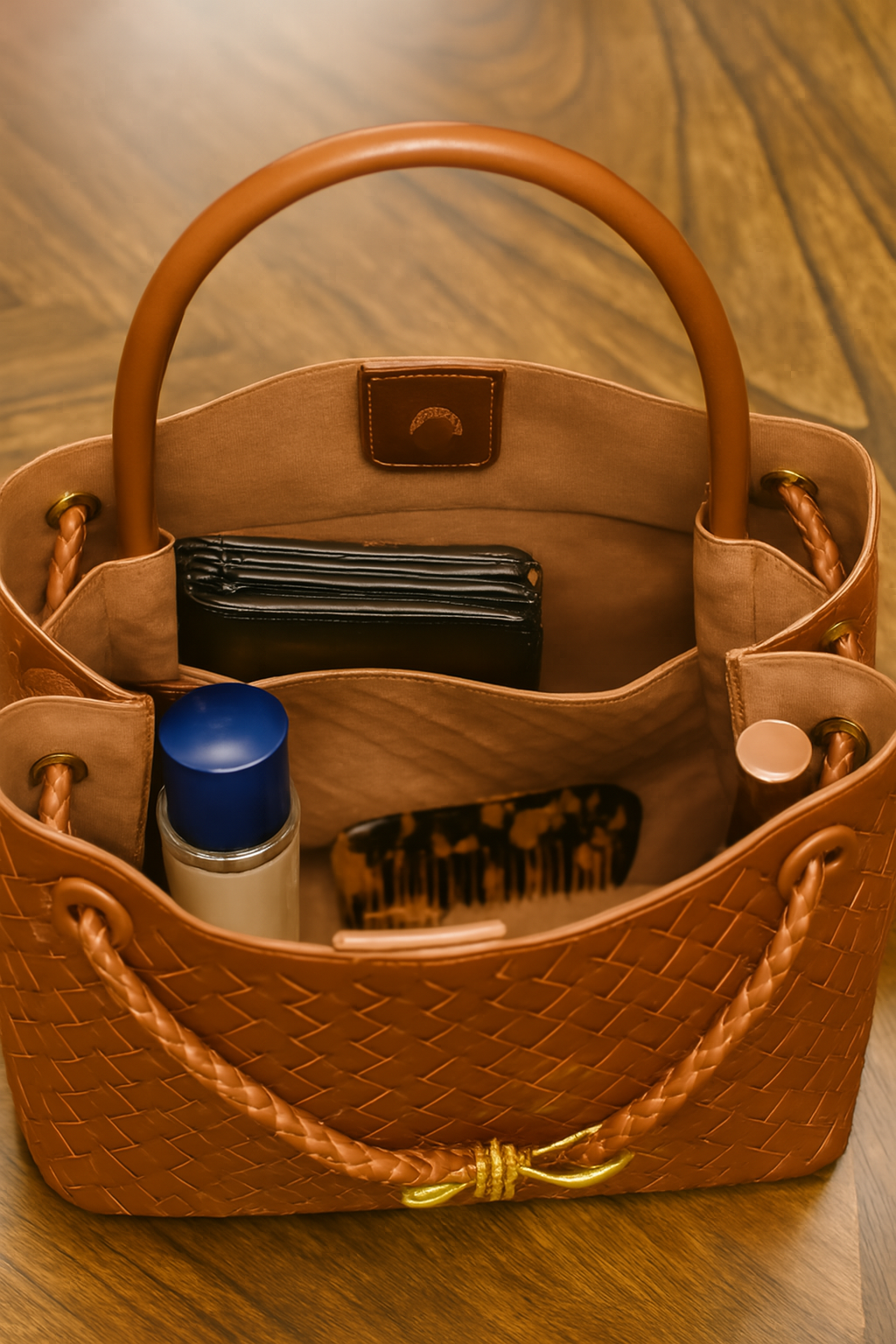 - Braided Handles: Dual top handles with braided detailing for a secure, stylish grip